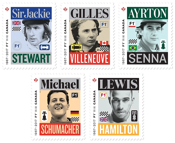 Гран-при Канады, который пройдет 11 июня в Монреале, станет юбилейным, пятидесятым по счету. Национальная почта выпустила специальную серию марок в честь предыдущих победителей гонки.