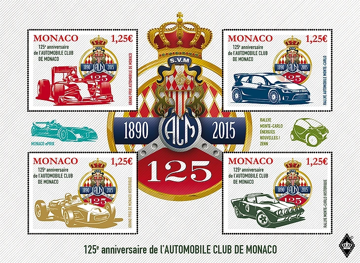 На марке изображены все гонки, которые когда-либо организовывали по улицам Монте-Карло: от «Формулы-Е» до исторических Больших Призов. Стоимость на момент выхода равнялась 1,25 евро, сейчас же на ebay они доступны за 7.