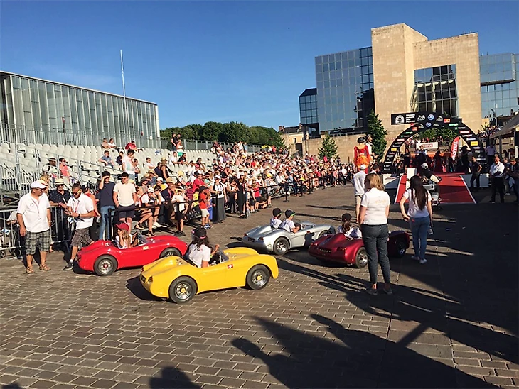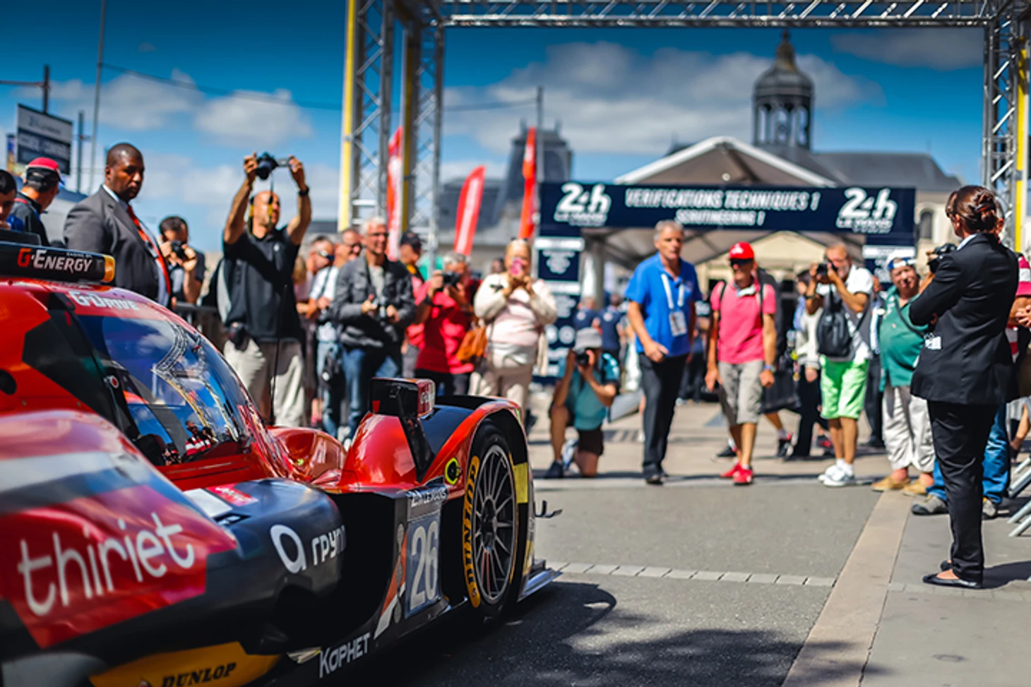 17:30. Парад пилотов. Лысину Фабьена Бартеза хотят поцеловать почти все. Вратарь сборной Франции еще девять лет назад научился не стареть, перейдя в автоспорт, и теперь он сам пилотирует гоночный автомобиль на гонке в Ле-Мане (класс LMP2). За день до старта Бартез, как и все участники, проезжает по городским улицам на ретро-машине. Парад начинается возле сцены и вип-палаток, где живут питательная тень, калорийные закуски и звон стеклянных стаканов. Шатры и их обитатели напоминают дорогие витрины, мимо которых едут гонщики на плавных авто.