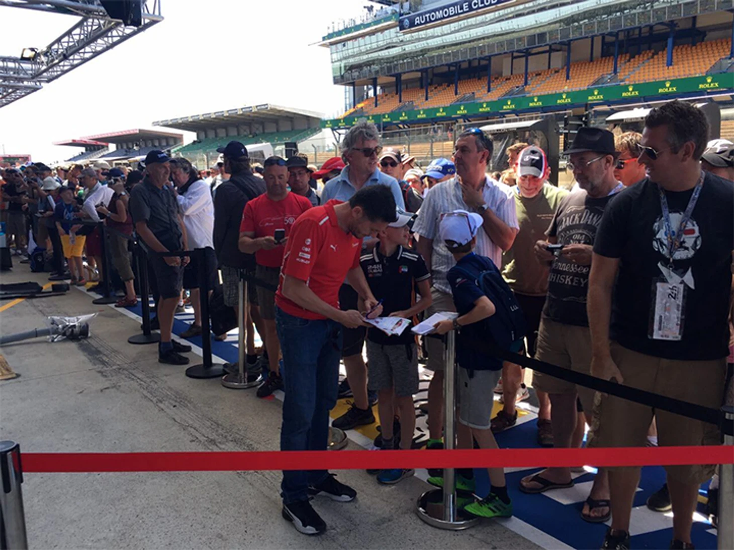 13:10. Пит-лейн трассы «Сарт». Туда выходит парадная сторона трибун, потому что все остальные либо на разноцветных креслах, либо в палаточном заповеднике. Те, кто дошел до своего места, но не попал на трассу, голые по пояс ухают, как исландцы на футбольном Евро, ведь машины, частично покрытие клеенкой против нагревания, выкатили уже на трассу, а рядом стоят сами пилоты. До них можно дотронуться, а также сфотографироваться.
