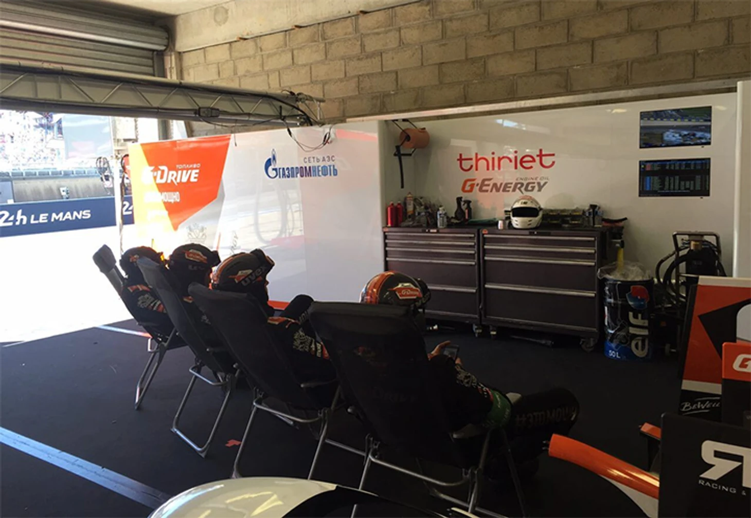 Пять механиков сидят на удобных стульях, слушают музыку, пьют газировку и расслабленно смотрят на два экрана. На первом — главные события гонки. На втором — обновляемая таблица с результатами. Роман Русинов начинал первым в своем классе, однако упустил несколько позиций на старте. Все застегнули комбинезоны, команда приготовилась принимать своего пилота, но первый же пит-стоп получился слишком долгим (больше двух минут), и казалось, что-то пошло не так.