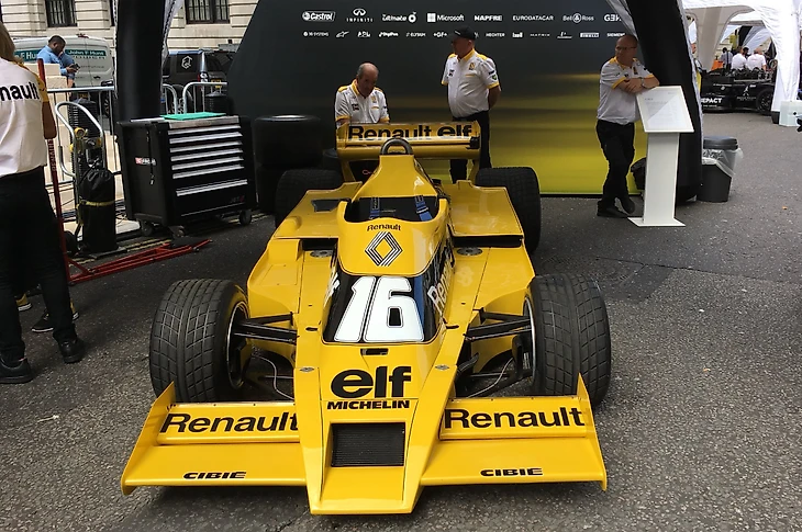 В этом году в «Рено» празднуют 40 лет со дня первой гонки в «Формуле-1». В честь этого команда привезла в Лондон первый болид в своей истории.