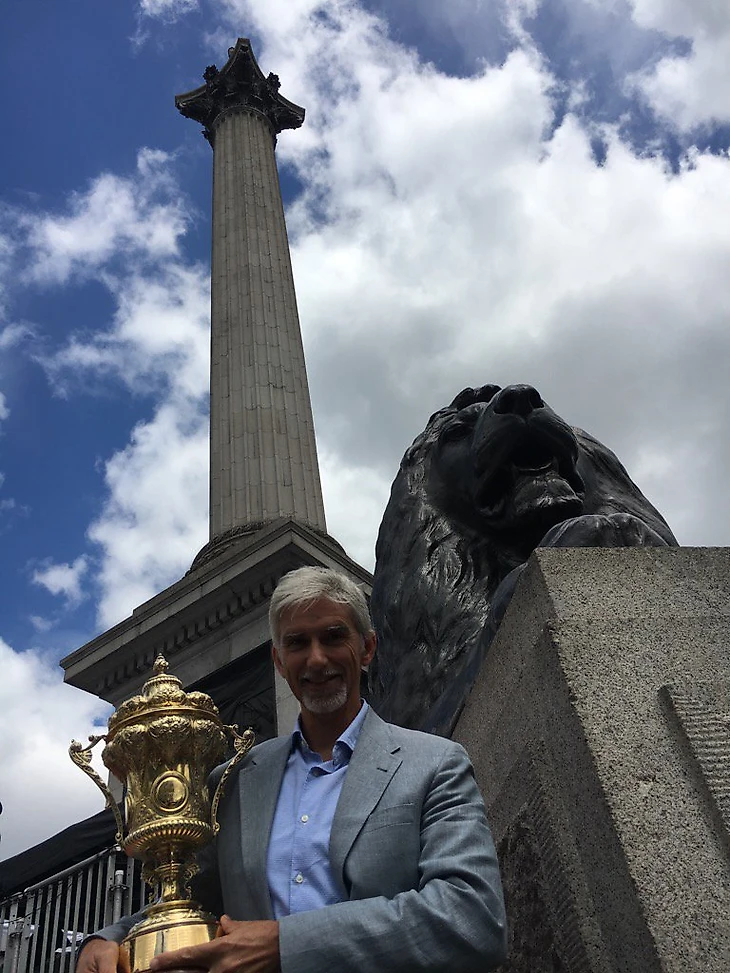 Победитель Гран-при Великобритании 1994 года Деймон Хилл подержал в руках тот самый трофей, который выиграл более 20 лет назад.