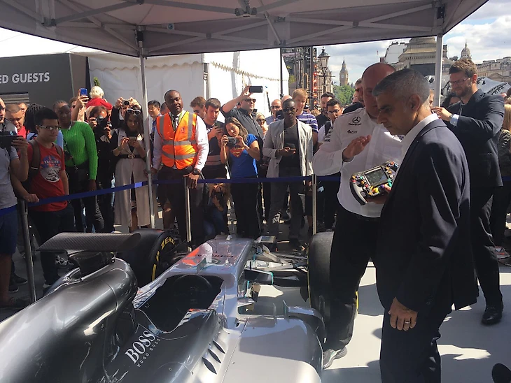 Мэр Лондона Садик Хан посетил боксы «Мерседеса».