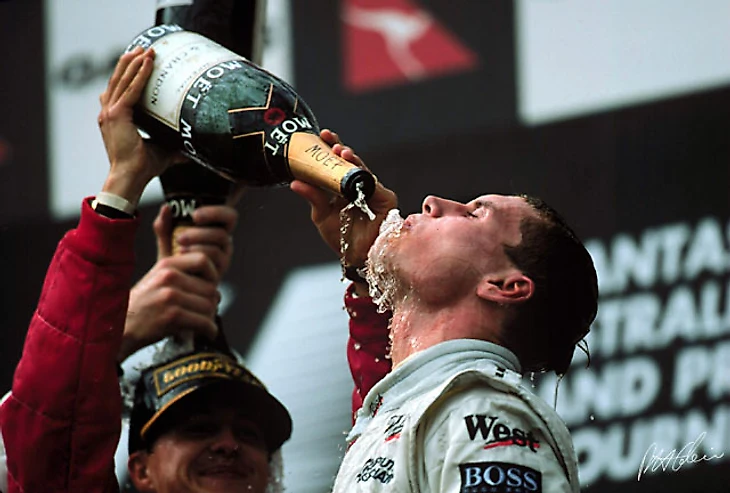 Во время межсезонья команде Рона Денниса удалось достичь существенного прогресса во всех ключевых областях и поэтому «серебряные стрелы» приехали в Мельбурн в ранге фаворитов. Преимущество «Макларен» над оппонентами было настолько огромным, что всем стало ясно: если не технические проблемы, то победа достанется именно представителю команды из Уокинга. Но сам Рон Деннис не был окончательно уверен в надежности техники, а потому просил своих гонщиков как-то договорится о победе в гонке. В результате Мика и Дэвид сошлись во мнении, что победить должен тот, кто первым войдет в первый поворот. В спринте к первому виражу победил Мика, но ближе к середине дистанции финн совершил ошибку и заехал лишний раз на дозаправку. Как позже выяснилось, кто-то вмешался в радиообмен Хаккинена с командой и зазвал гонщика на внеплановый пит-стоп. Так ли это было? Правду знает только руководство «Макларен» и сам Мика. Есть гипотеза, что финн не расслышал сообщения команды – у него были проблемы со слухом после своей кошмарной аварии в Аделаиде в 1995.