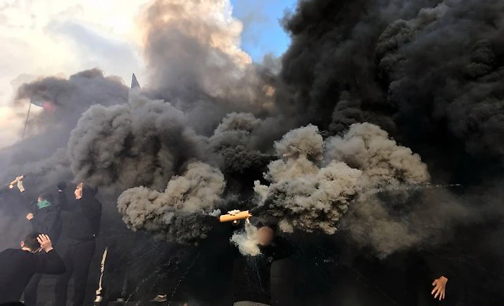 Судя по всему, это были фанаты местного «Вереса», которые славятся своими перфомасами с черным дымом.