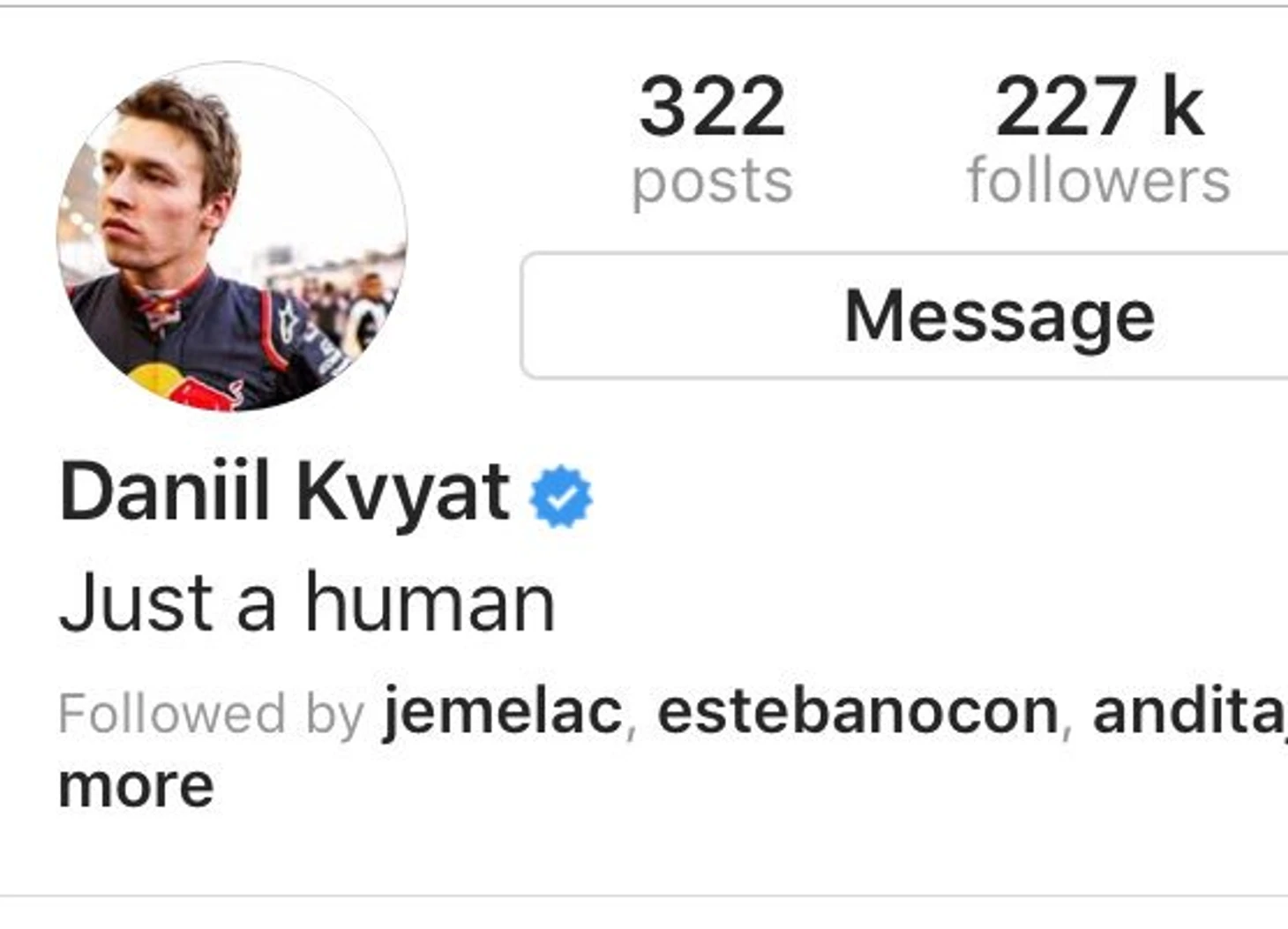 Теперь в официальном инстаграме Даниила нет ни слова о «Формуле-1», «Торо Россо» и «Ред Булл». Вместо регалий и названия команды в статусе написано «Просто человек».