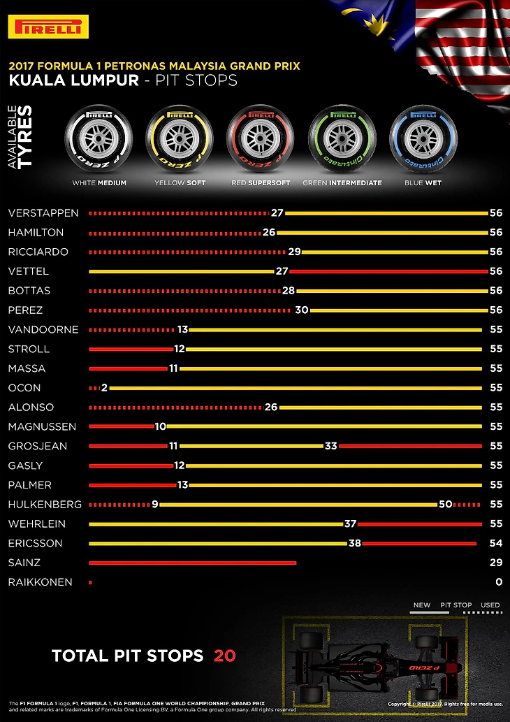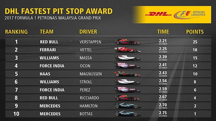 Если говорить о Феттеле, то стоит упомянуть, что ни разу до воскресной гонки стартовавший на Сепанге с последних мест пилот не добирался до финиша выше седьмого места (прошлогодний прорыв Фернандо Алонсо с 22 на 7 место). Блестящий пилотаж позволил немцу прорваться на четвертое место, победить в голосовании за Гонщика дня и в 31 раз в карьере показать быстрейший круг в гонке.