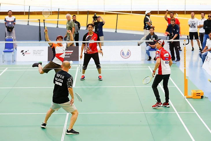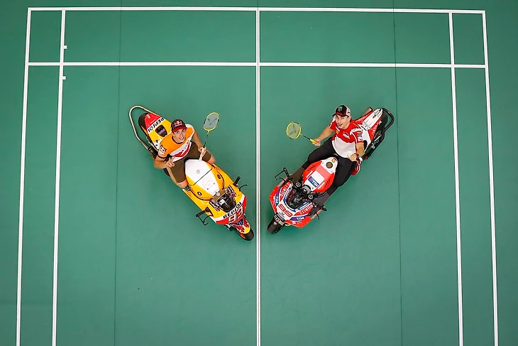 Хорхе Лоренсо и Марк Маркес весело провели время, сыграв в бадминтон друг против друга в паре с призерами Олимпийских игр этого вида спорта из Малайзии.