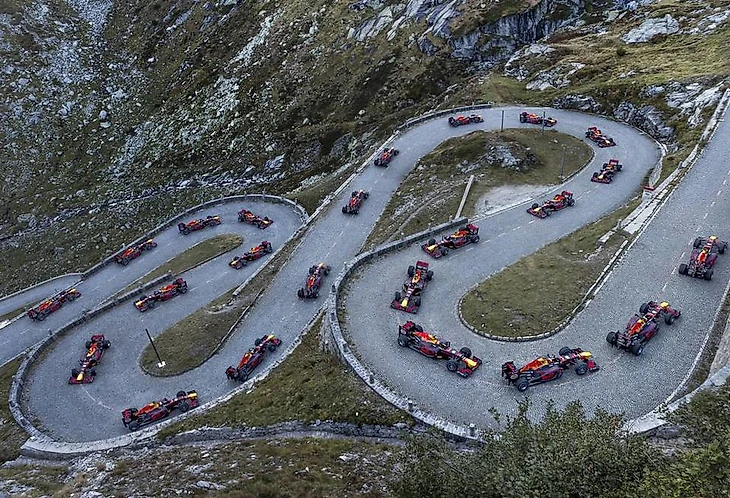 «Ред Булл» регулярно радует своих болельщиков различными видео с визитами в самые труднодоступные уголки планеты. Вот и теперь они решили покорить серпантин Тремола на перевале Сен-Готард в Швейцарских Альпах — и выбрали для этого чемпионский болид Себастьяна Феттеля 2012 года RB8. За руль закономерно сел урожденный швейцарец и просто отличный пилот Себастьян Буэми, не понаслышке знакомый с горными дорогами.
