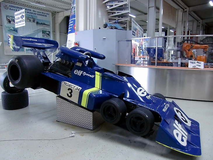 Tyrrell P34 (1976-1977). Единственный шестиколесный автомобиль Ф-1, который участвовал в гонках. Начало было красивым, но из-за того, что поставщик шин, Гудьир, не работали (или делали это очень медленно) над их совершенствованием, успех оказался краткосрочным. Если в сезоне 1976-го года команда заняла 3-е место в КК, то в 1977 это было лишь 6-е. Джоди Шектер, южноафриканский пилот, называл машину кучей хлама и в конце первого сезона покинул команду.
