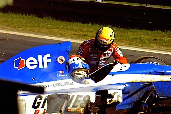 35. (О ГП Сан-Марино) «Уже был один эпизод за год до этого на свободных заездах в Спа. Эрик Комас попал в аварию, Сенна остановился посреди трассы…»