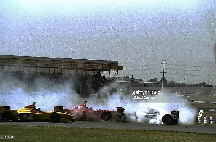 На старте Михаэль Шумахер не поделил дорогу с Stewart Баррикелло, пилоты Jordan место аварии благополучно миновали. Физикеллу вынес как раз-таки младший Шумахер на 25-м круге гонки