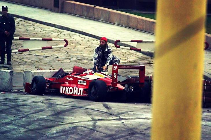 В стартовой толчее первого поворота Петров и Байбородов сохранили свои позиции, а вот Казаков перестарался, возможно, перенервничал и уткнулся в отбойник, повредив себе переднее антикрыло. Уж не знаю, какой разнос устроил своим гонщикам Евгений Малиновский перед стартом этой гонки, но и Юрий Байбородов верблюжьим спокойствием не отличался. Пока Петров уверенно, как локомотив, петлял между бетонными стенами, Байбородов, который, в общем-то, был не медленнее Виталия, постоянно ошибался, перетормаживал и все никак не мог подобраться на дистанцию атаки. Все закончилось в первом повороте последнего круга – пилот «Лукойл» пытался издалека атаковать Петрова, но ошибся и с чудовищной силой врезался во все тот же отбойник, что приютил другого пилота «Лукойла» пятнадцатью минутами ранее. Юрия увезли на скорой для обследования, которое, к счастью, ничего серьезного не выявило – ушибы и растяжения, прежде всего, шеи – из-за резкой перегрузки.