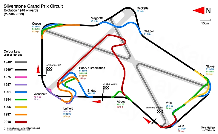 А вторым ключевым элементом были гоночные трассы. До войны Британия отставала из-за закона, запрещавшего соревнования на публичных дорогах. Французы, немцы и итальянцы могли устраивать гонки там, где хотели, в то время как британский закон разрешал гонки только на частной территории, что ограничивало выбор Бруклэндс и Доннингтон Парком. Война это изменила. Между 1939 и 1945 Британия построила буквально сотни авиабаз. Министерство обороны реквизировало огромные участки земли, а подрядчики, такие как McAlpine, Laing и Wimpey, сделали на этом состояния. За шесть лет войны было построено 444 базы, а на пике строительства в 1942 каждые 3 дня открывалось по новой базе. Это были оперативные базы бомбардировщиков, использовавшиеся бомбардировочным командованием Королевских ВВС, а также Восьмой воздушной армией ВВС США. Плюс базы Командования истребительной авиации и Командования береговой охраны, а также прочие, используемые для тренировок и обслуживания. Все они были возведены в кратчайшие сроки, используя единый дизайн взлётно-посадочных полос (ВПП) и зданий. ВПП обычно образовывали букву А, с тремя полосами пересекающимися между собой и широкими рулёжными дорожками, соединяющими их с районами рассредоточенной стоянки и ангарами. Считалось, что к 1945 было построено около 14,5 тыс. км. бетонных ВПП в сельских районах Британии. Большинство их них в один момент стали более не нужны.
