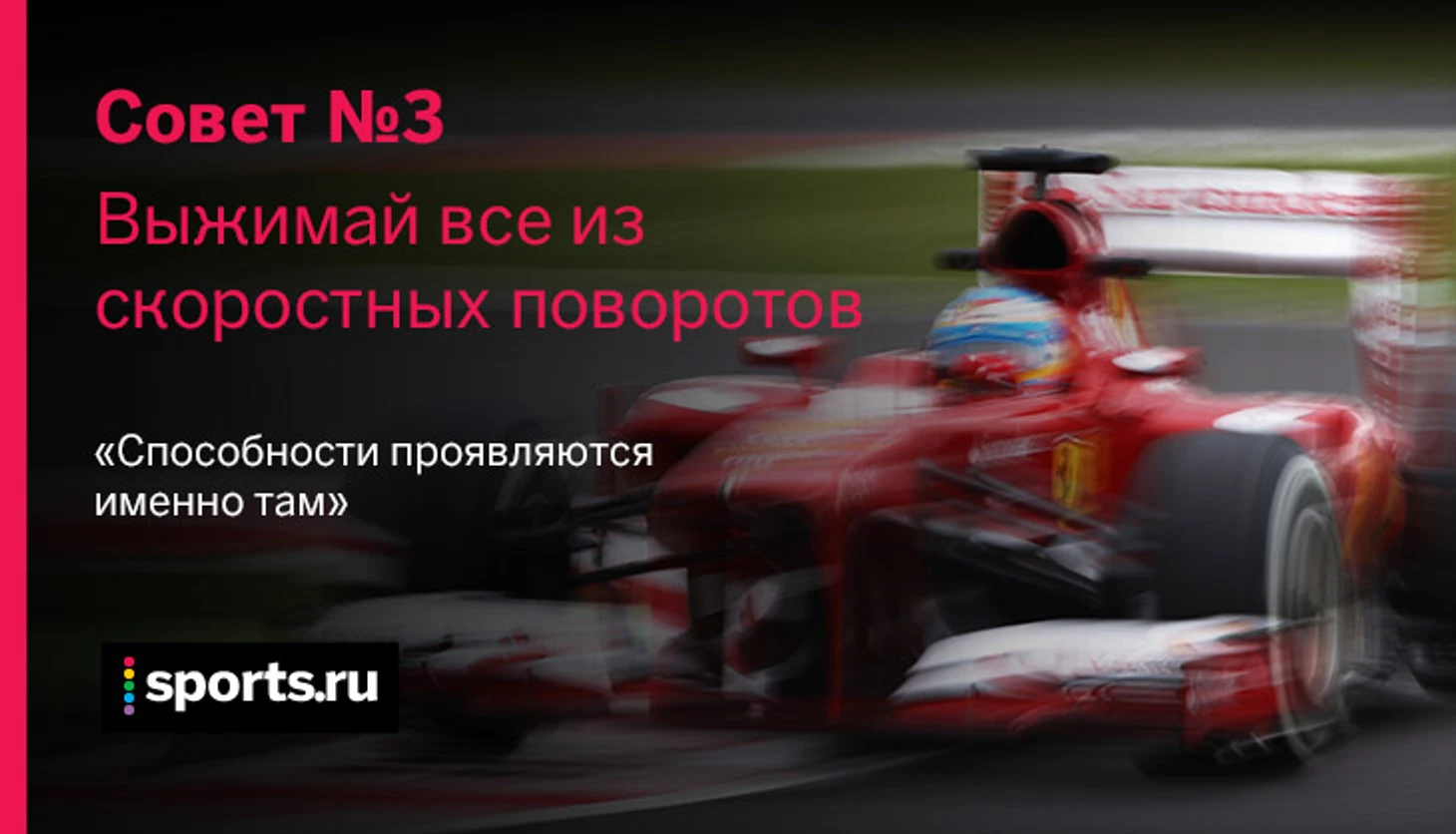 «Высокоскоростные повороты — чистейший адреналин для гонщика. Мы не то чтобы не любим медленные повороты, просто принцип их прохождения довольно прост: тормозишь в самой поздней точке, плавно поворачиваешь и давишь на газ как можно раньше. Способности проявляются именно в скоростных поворотах — где наибольшая вероятность разбить машину. Нужно не бояться виражей, а иногда закрывать один глаз и давить на газ. Знаете, почему я гоняю с темным визором? Чем меньше видишь — тем ты быстрее!».