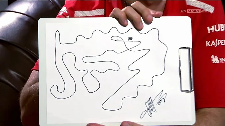 Пилот «Феррари» Себастьян Феттель в преддверие Гран-при Китая дал интервью английской телекомпании Sky Sports, во время которого его попросили нарисовать идеальный по его мнению трек.