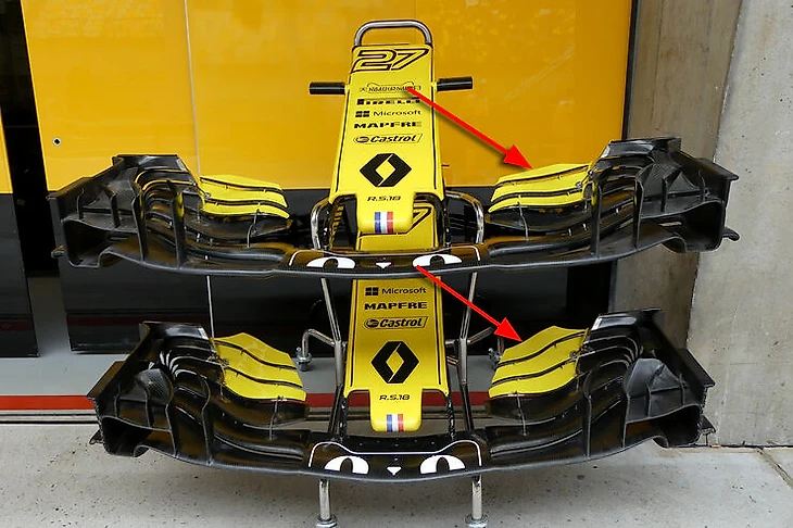 «Рено» тоже обновило антикрылья, сделав элементы намного тоньше и сложнее.