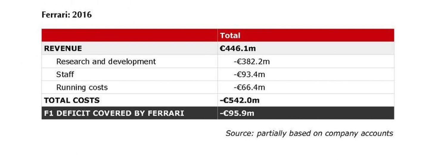 С другой стороны схема «Феррари» выглядит немного иной — итальянцы показали формальный убыток в 82 миллиона фунтов, который погашает владелец (концерн «Фиат»). Можно взглянуть на их расходы подробнее: