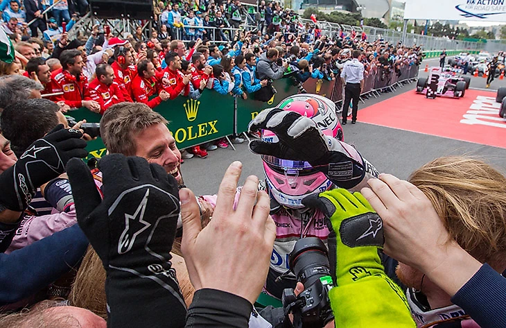 Серхио Перес («Форс-Индия») под клетчатым флагом