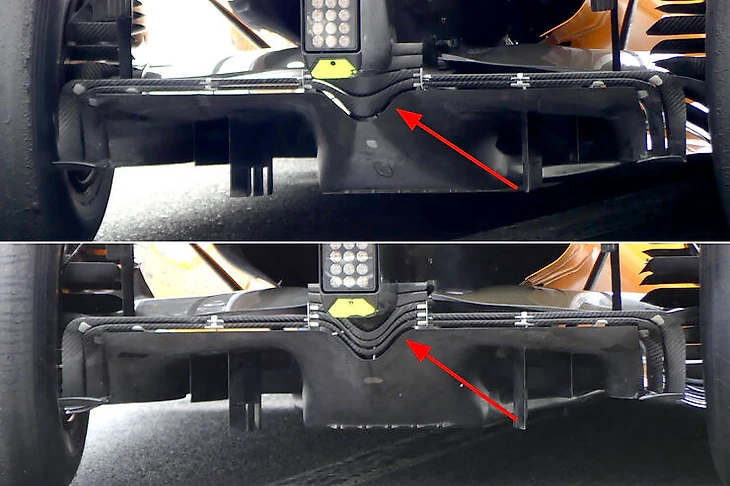 «Оранжевые» изменили и боковой рассекатель, остановившись в итоге на гибриде «аэрокота» и собственной разработки с Гран-при Бахрейна.