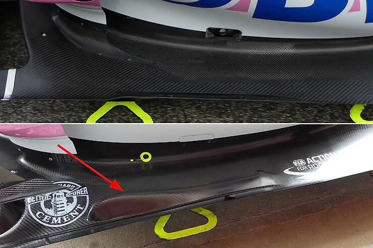 «Заубер» в свою очередь изменил крепление носового обтекателя на шасси и вместе с ним обновил s-воздуховод.