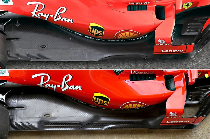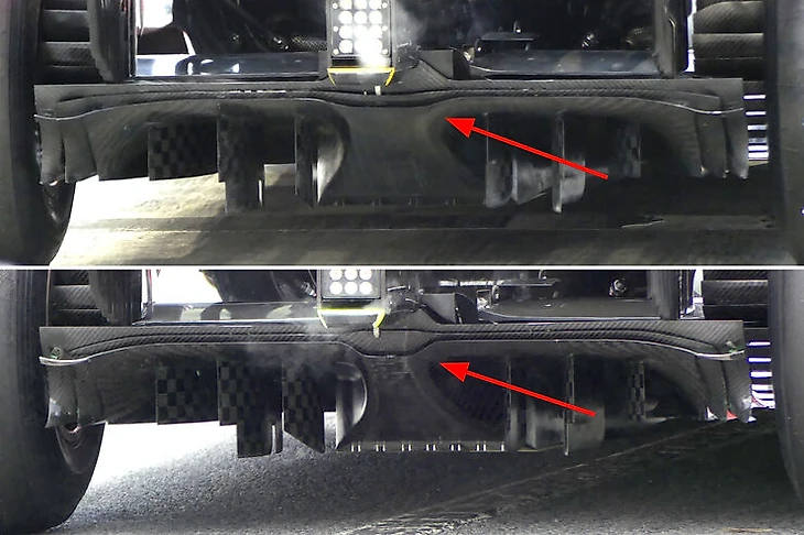 «Феррари» тоже привезла новое днище — тоже с другими прорезями и большим количеством продольных отверстий по бокам.