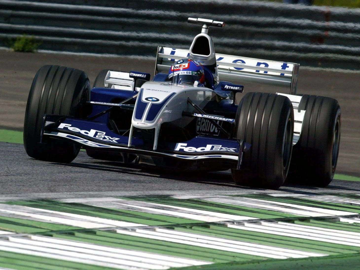 Однако француз почти сразу после рестарта сходит с дистанции. Волна остановок пришлась примерно на 15 круг, а квартет лидеров + БАРы сделали свои дозаправки чуть позже. На пит-стопе Михаэля Шумахера произошло возгорание, которое смогли, конечно, потушить, но остановка Шуми длилась на 10 секунд дольше обычного. В итоге, он пропускает на 1 место Хуана-Пабло Монтойю, остановившегося раньше всех в этой группе, а на второй позиции остался Кими Райкконен.
