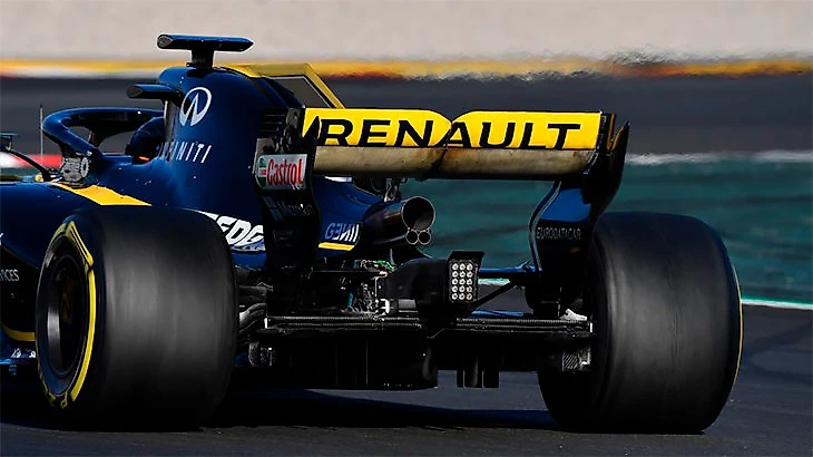 Работает предполагаемая система по методу копирования эффекта «выдувного диффузора» из 2010-2011-х годов: поток горячего отработанного воздуха из дополнительных выхлопных труб выбрасывается под заднее антикрыло и создает там разреженную область, тем самым повышая прижимную силу. Под такой же результат, к примеру, заточена уникальная и совершенно законная выхлопная система болида «Рено» с «задранными» трубами.