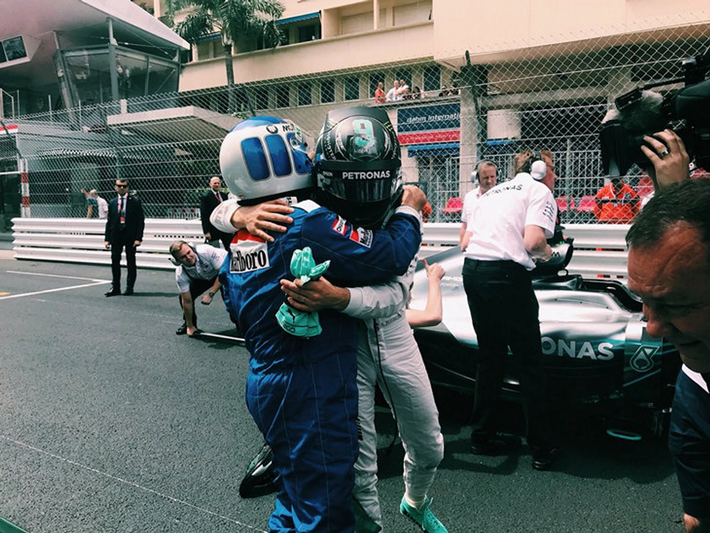 Поскольку оба гонщика давно живут в Монте-Карло, то и согласились проехать демонстрационные круги именно во время княжеского Гран-при. Чемпионы воспользовались своими славными победными болидами: «Уильямс FW08» для Кеке (одна победа + пять подиумов) и «Мерседес W07» (9 побед + 7 подиумов в 2016-м) — причем оба выиграли главные в своей жизни гонки под шестыми номерами.