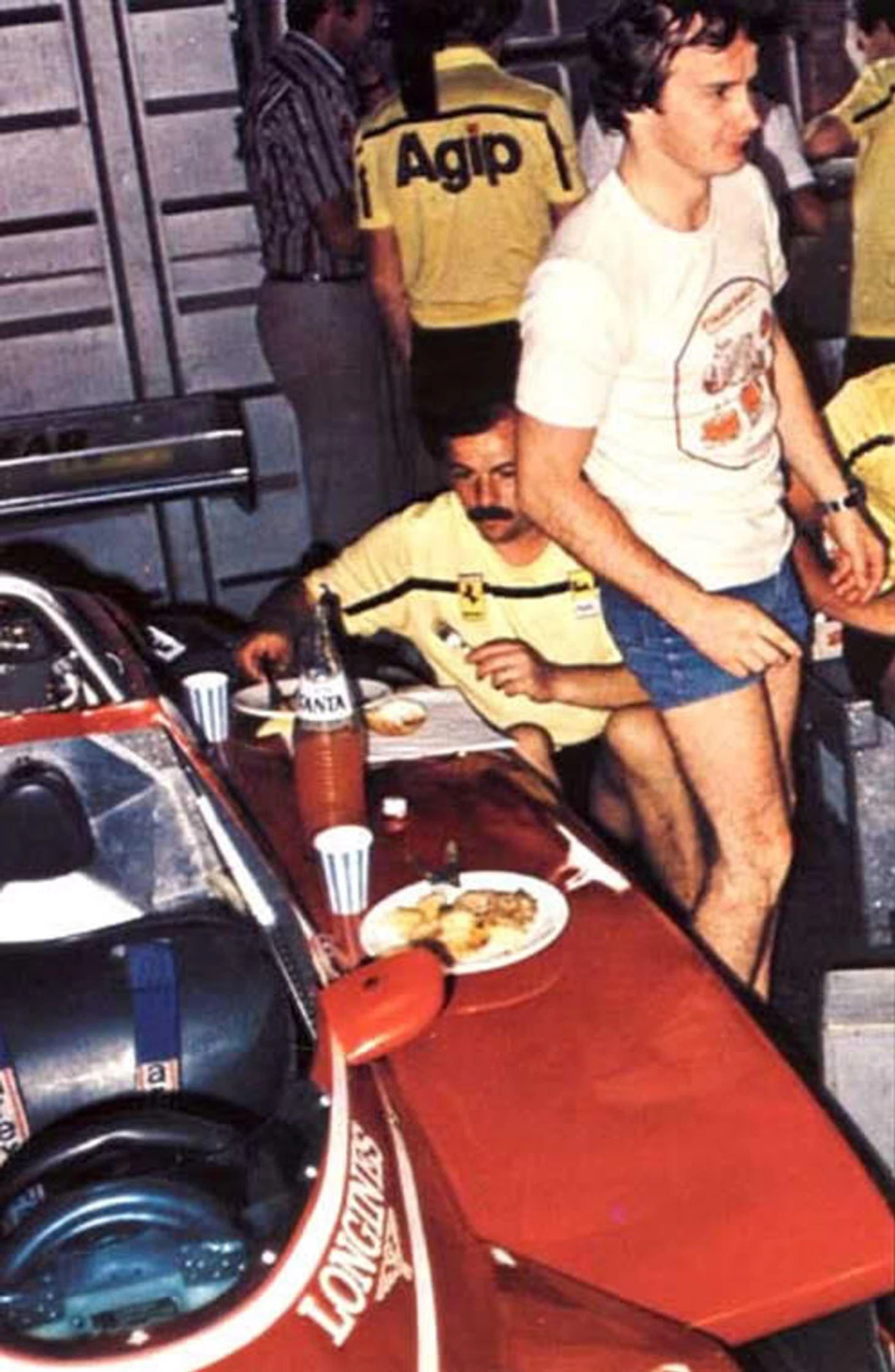 Ретро дня: Механики «Феррари» используют боксы и машину в роли столовой