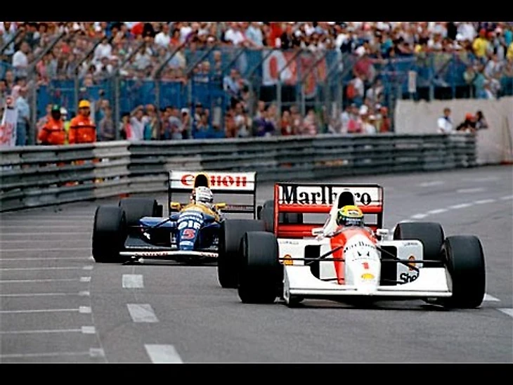 В это же время Микеле Альборето разворачивает прямо перед Сенной. К счастью, контакта не было, но Микеле потерял очень важные 10 секунд в борьбе за 6 место с Бертраном Гашо. Этап в Монако должен был стать историческим. Прокол и медленный пит-стоп Найджела Мэнселла сделали лидером Волшебника: 5 секунд меж британцем и бразильцем.
