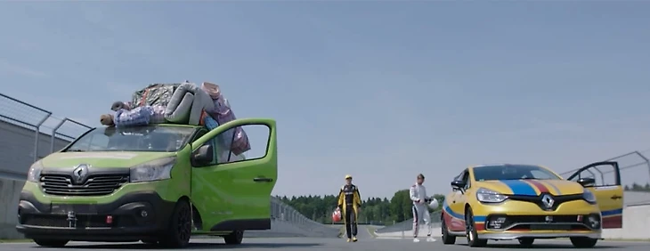 Одним из героев передачи стал пилот «Рено» Нико Хюлькенберг — его пригласили для противостояния ведущему на гоночном треке в течение трех кругов. Халку выдали перегруженный фургон «Рено Трафик» с общей массой авто и снаряжения в 2300 кг, мощностью в 125 л.с. и максимальной скоростью в 177 км/ч (без загрузки). Йоко же получил боевой «Рено Клио R.S», на которых гоняются в европейских сериях Clio Cup, мощностью 225 л.с. и с максимальной скоростью в 235 км/ч. Масса автомобиля составила 1280 кг.