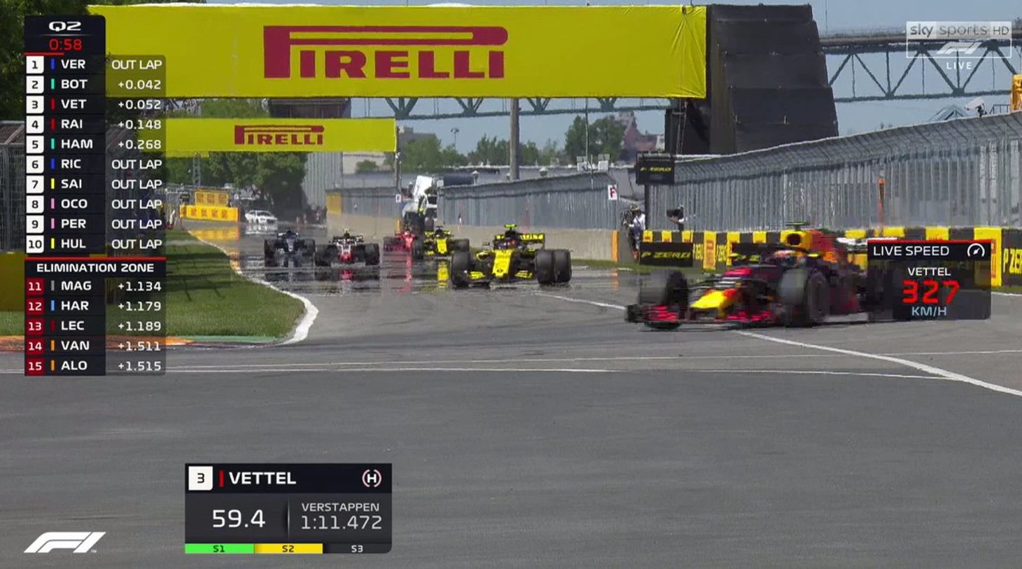 В конце второго сегмента квалификации в Монреале немецкий пилот «Феррари» Себастьян Феттель штурмовал первое место Макса Ферстаппена из «Ред Булл» и показывал абсолютно идентичное голландцу время после первых двух секторов, но на третьем он увидел вот это.