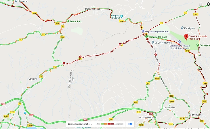 В результате из Ле-Кастелле на автодром можно было попасть лишь по одной полосе — куда и ринусь все-все предполагаемые посетители.