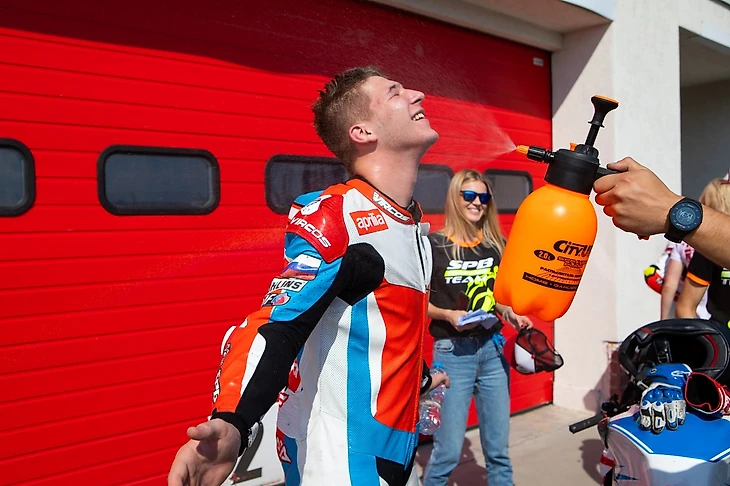 Самый мощный класс чемпионата – Superbike, как всегда, показал красивую борьбу сильнейших пилотов. Жара внесла свои коррективы в техническое состояние мотоциклов, поэтому не каждый гонщик смог в полной мере продемонстрировать всю силу своей боевой техники. Так многократный чемпион Владимир Леонов (SPB Racing Team), совершив ошибку, пропустил вперед своих основных соперников: Сергея Крапухина (RWT Motorsport), Антона Ерёмина (Motorrika) и Петра Кожеурова (ЦСКА DMC Racing), но сделав красочные обгоны, Владимир пробрался на вершину гоночного списка и первое место подиума. Опытный гонщик Сергей Крапухин, несмотря на попытки обойти Владимира Леонова, держась за ним следом, по итогу этапа занял второе место. Антон Ерёмин не пропустил Петра Кожеурова вперед и оставил себе третью строчку гонки.