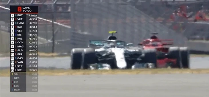 Итальянский журналист Джанлука д’Алессандро обратил внимание на интересный факт: в течение последних десяти кругов Гран-при Великобритании лишь Себастьян Феттель изо всей топ-5 пилотов, претендовавших на подиум, использовал DRS во втором повороте.