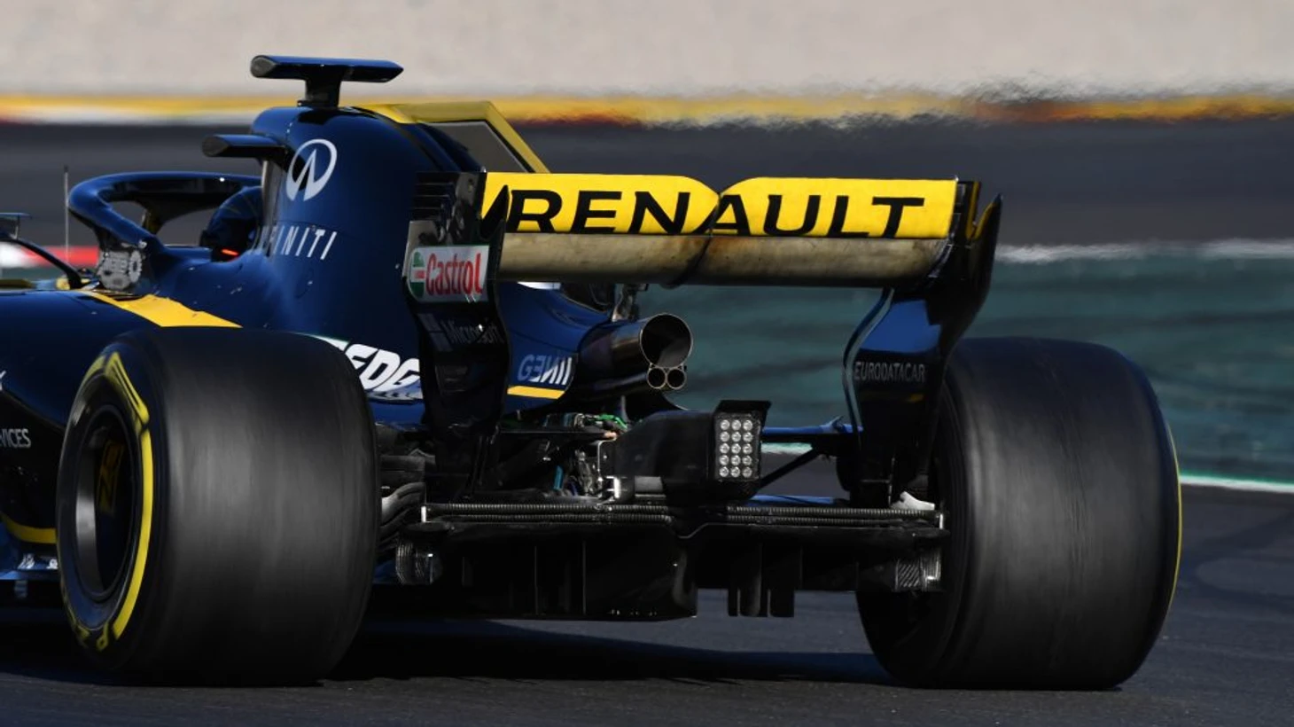Главной идеей новинки стало перенаправление горячих выхлопных газов на заднее антикрыло ради повышения аэродинамической эффективности. Только «Рено» для этих же целей использовало изгиб основной выхлопной трубы, а «Феррари» переосмыслила конструкцию задней части машины и перешла от двух боковых дополнительных труб к расположению их над основной. Данная система позволила им уплотнить конфигурацию кожуха мотора.