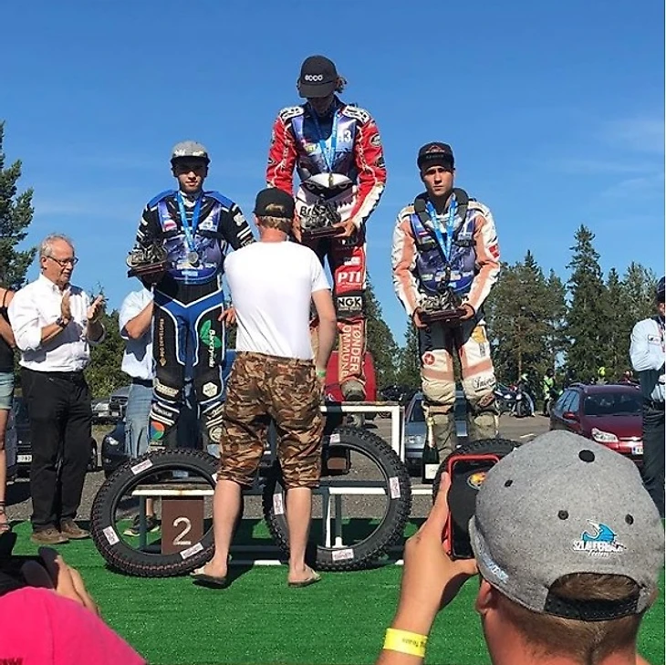 Латвию в этой гонке представляли даугавпилсские спортсмены Олег Михаилов и Артем Трофимов. Трек в Финляндии короткий, со сложными виражами, но Олег сумел раскусить его на тренировке и в гонке ехал очень быстро. В первом своем заезде Олег проиграл старт и висел на колесе у опытного польского юниора, но так и не смог его обогнать. В своем третьем заезде Олег вел борьбу за победу с будующим победителем гонки Хансеном, Олег активно атаковал, что привело к падению датчанина. По словам очевидцев вины Олега в этом не было, но судья Марек Воячек решил этот эпизод по-другому. Фактически этот заезд стал решающим для Олега в распределении финальных мест. Далее он не совершал ошибок, что позволило подняться на третью ступень пьедестала. Для Артема гонка явно не задалась, он не смог приспособиться к треку, отсюда и результат. В его активе 7 очков и десятое место.