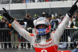 А теперь, друзья, переместимся в начало пелотона. Там, после всех этих событий, в борьбе за 2-е место сцепились три гонщика трех разных команд: Шумахер ("Мерседес"), Уэббер ("Ред Булл") и Баттон ("Макларен"). Сегодня Баттон 6 раз побывал на пит-лейне, поучаствовал в двух столкновениях, а он еще в борьбе. В итоге, за 2-3 круга до финиша Дженсон Баттон прошел сначала Уэббера, а потом и Шумахера. Ну, а потом Шумахер пропустил-таки второй болид "Ред Булла", и подиум ушел из-под носа. А теперь вернемся к Феттелю, его со страшной силой догонял Дженсон Баттон, и вот первое место немца пошатнулось. 70-й, последний, круг дал ответы на все вопросы. Нервы у молодого немца все-таки не выдержали. Феттеля занесло на выходе из 6-го поворота, и Дженсон Баттон вышел в лидеры Гран-при Канады. Им он и остался до самого клетчатого флага. Феттель остался вторым, Уэббер все-таки вырвал третье место у Шумахера. Виталий Петров, про которого мы совсем забыли, занял 5-е место, повторив свой лучший результат прошлого сезона. А в борьбе за шестое место, на финишной прямой, Фелипе Масса сумел-таки обойти Камуи Кобаяши.