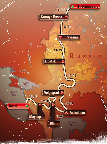 Вместо этого, в судьбу успешного начинания вмешалась политика: следующий «Шелковый путь» сменил дислокацию, лишившись всякой связи с историческим наследием. Гонка 2010 года проходила только по территории России и больше напоминала путь из варяг в греки, чем верблюжьи странствия через пустыни. Ралли-рейд стартовал в Санкт-Петербурге и после броска через Среднерусскую возвышенность завершался в Сочи.