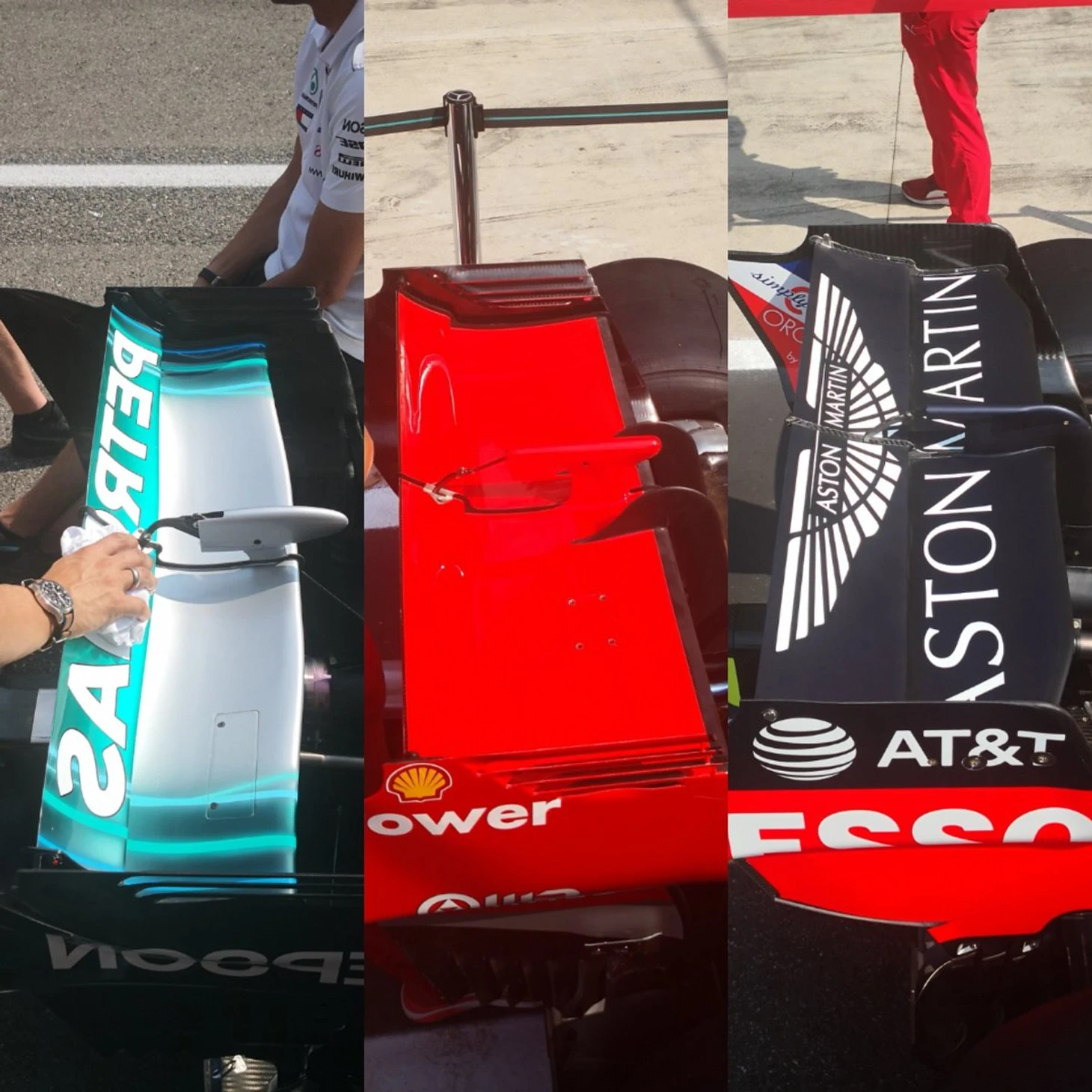 «Феррари», «Мерседес» и «Ред Булл» продолжают гонку обновлений в борьбе за скорость на трассе — и в ее рамках три лидера Кубка конструкторов привезли три очень разных решения заднего антикрыла.