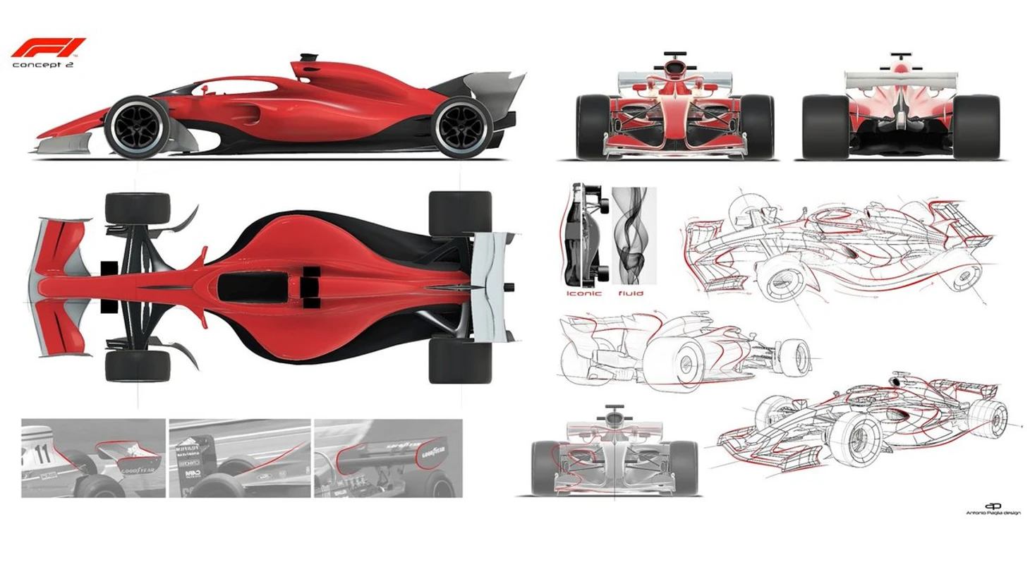 Так переднее антикрыло напоминает часть концепта машины 2025 года, представленного итальянским дизайнером Антонио Пальей.