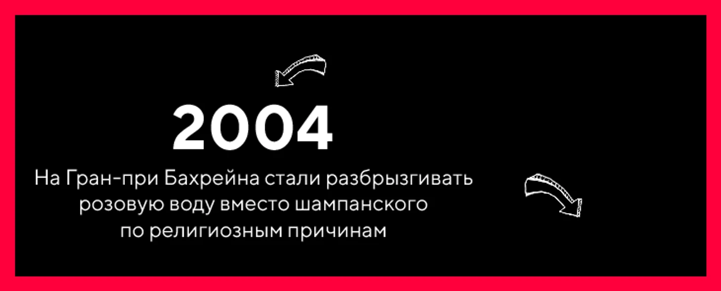 На сей раз в дело вступили не решения правительств или воля монархов, а религиозные предписания. Речь идет о мусульманских странах вроде Бахрейна и Абу-Даби, где в соответствии с Кораном запрещено любое производство, продажа или распитие алкогольных напитков без исключений (в Малайзии все-таки более либеральные нравы). Так в Сахире гонщики еще с 2004 года обливаются не шампанским, а местной газировкой Waard – сладкой смесью грейпфрутового сока и розовой воды. И гонщикам она не нравится: ее редко отваживаются отхлебывать из стеклянной емкости и нередко критиковали за вкус.