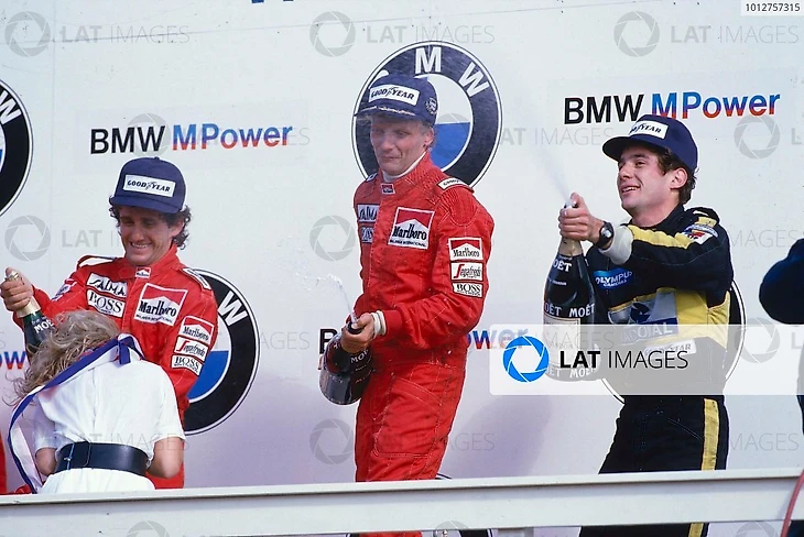 Когда он выходит, то, хотя и поздравляет меня, но выглядит довольно кислым. Наши шефы смотрятся тоже достаточно плохо, другие же счастливы. Хорошо видно, где проходят границы. За долгий ледниковый период в «Макларен» я научился ощущать это, поэтому такие вещи мне сейчас бросаются в глаза. Ален сказал, что я ехал невероятно жестко. Конечно, ответил я, а почему нет? Никто не должен тебе говорить, что чемпион мира Прост стал таковым с помощью Ники. Если положение станет действительно критическим, я буду на твоей стороне, обещаю. После чего он снова — любезный и нормальный человек.