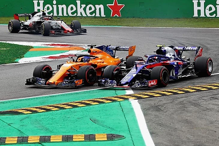 Уже в гонке на «Монце» испанец встретился с французским гонщиком «Торо Россо» на рестарте заезда на первых кругах. В борьбе Фернандо отправил Пьера на высокие поребрики в первом повороте, а затем стукнул соперника после его возвращения в положение «бок о бок».