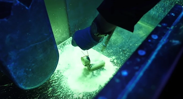 Только после этого деталь поступает на тесты под специальной ультрафиолетовой лампой.