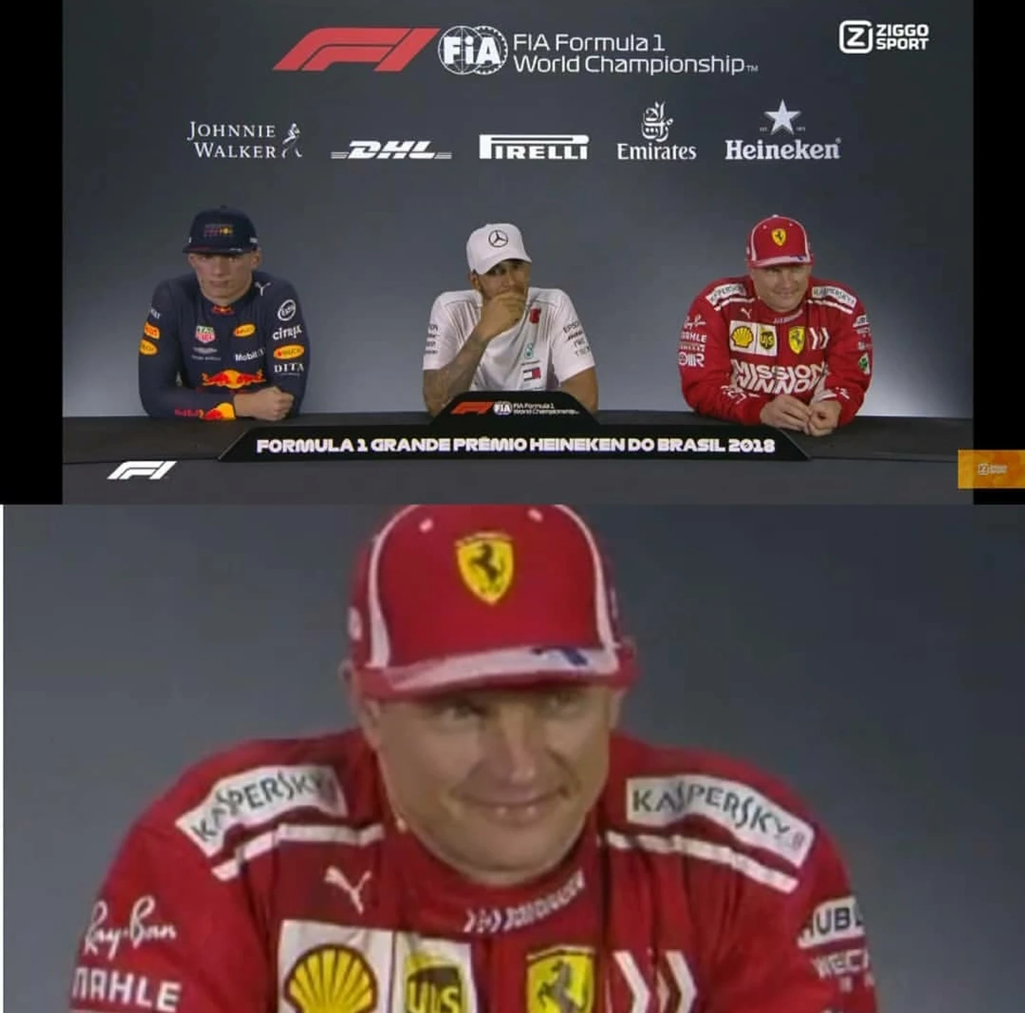 Реакция гонщика «Феррари» Кими Райкконена в этот момент оказалась просто бесценной.