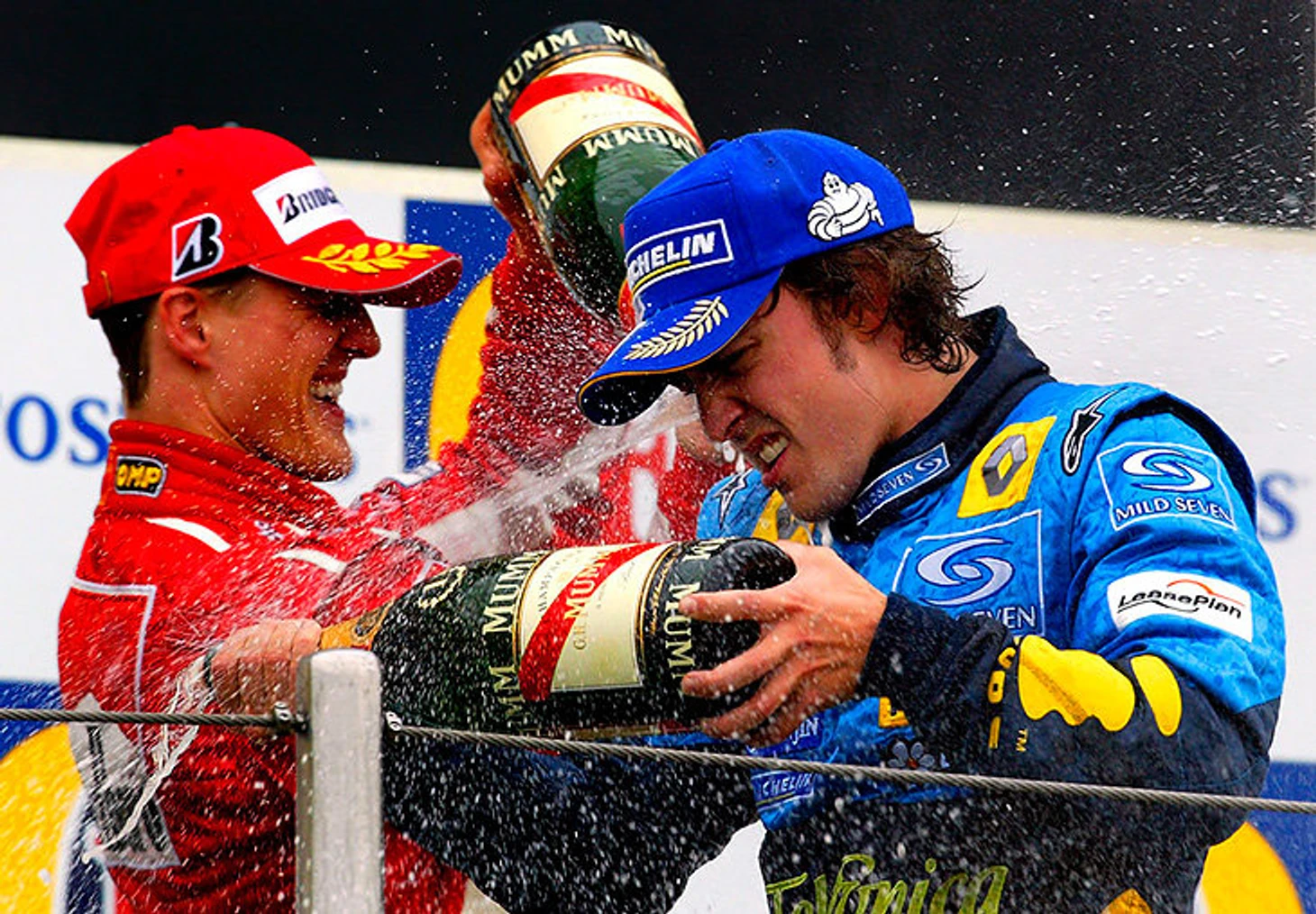 Первый его главный конкурент тоже был титаном. Алонсо был всего лишь 22-летним парнем, когда бросил вызов пятикратному чемпиону мира в Венгрии-2003 — и впервые в карьере поднялся на первую ступень подиума.