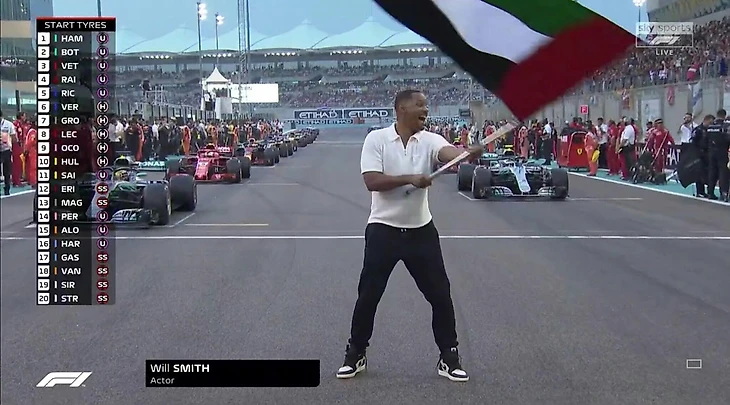 Хэмилтону удалось вернуться к своей машине, однако вакханалия с Уиллом не закончилась: например, именно американцу доверили махать флагом ОАЭ перед стартом прогревочного круга.